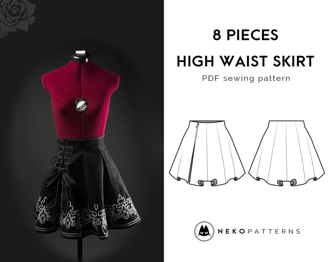 2B 8 Pieces High Waist Skirt PDF Sewing Pattern Female M Size Neko Workshop
