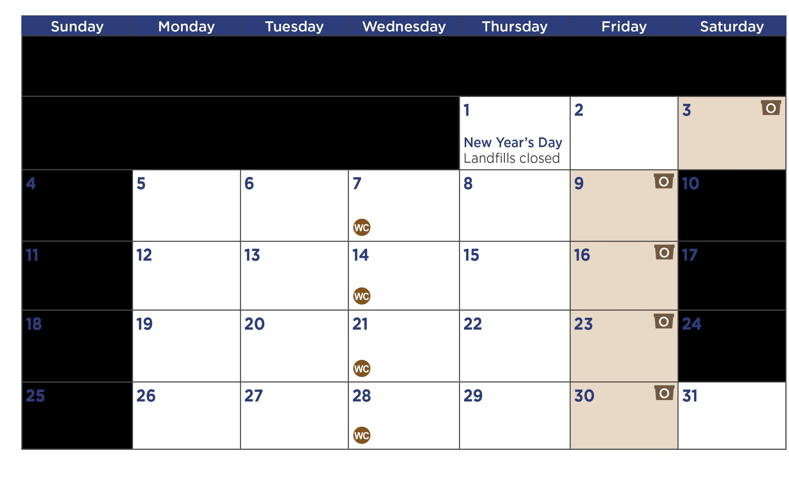 With our calendar, you can easily see at a glance which days your garbage will be picked up. No more missed pickups or overflowing garbage bins – stay organized and on top of your garbage duty with our handy printable calendar.